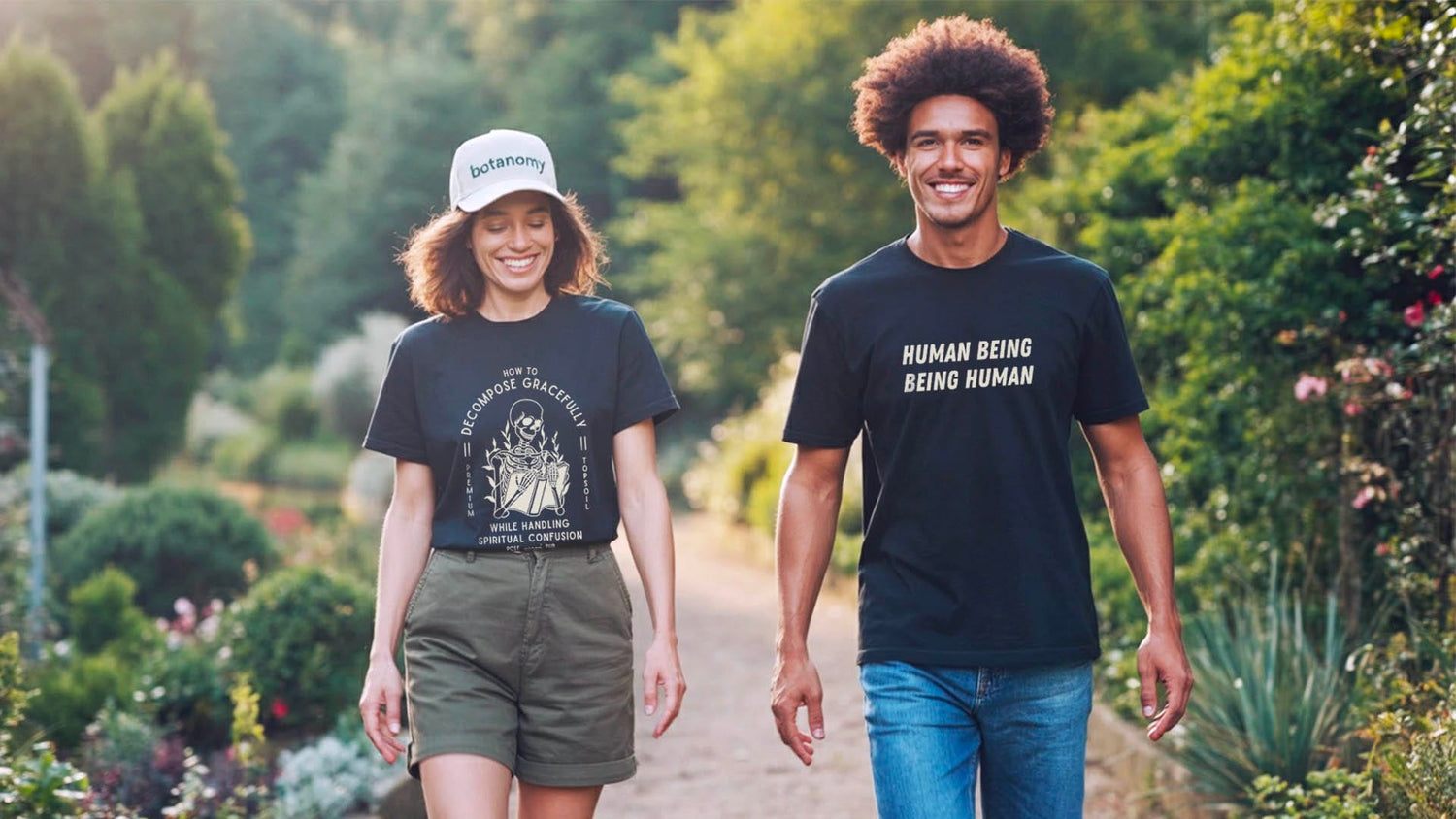We print each shirt on demand, which means we only print it when you make an order. No overstock, no land fillers of sad piles of unsold tees. It’s our way of keeping things thoughtful in a world that’s moving a little too fast. Slow fashion, with soul.